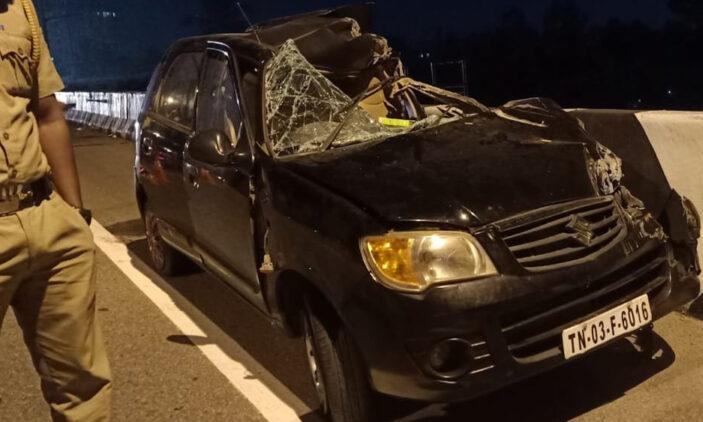 ആറ് പേരാണ് കാറിലുണ്ടയിരുന്നത്. പരിക്കേറ്റ രണ്ടു പേരുടെ നില അതീവ ഗുരുതരമാണ്. ഡ്രൈവർ ഉറങ്ങിപ്പോയതാണ് അപകട കാരണമെന്ന് കരുതുന്നു.