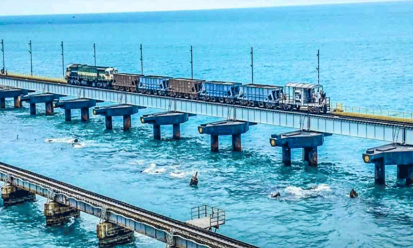 text_fieldsരാമേശ്വരം പുതിയ പാമ്പൻ പാലത്തിലൂടെ ആറ് ചരക്ക് ബോഗികൾ ഘടിപ്പിച്ച ട്രെയിൻ