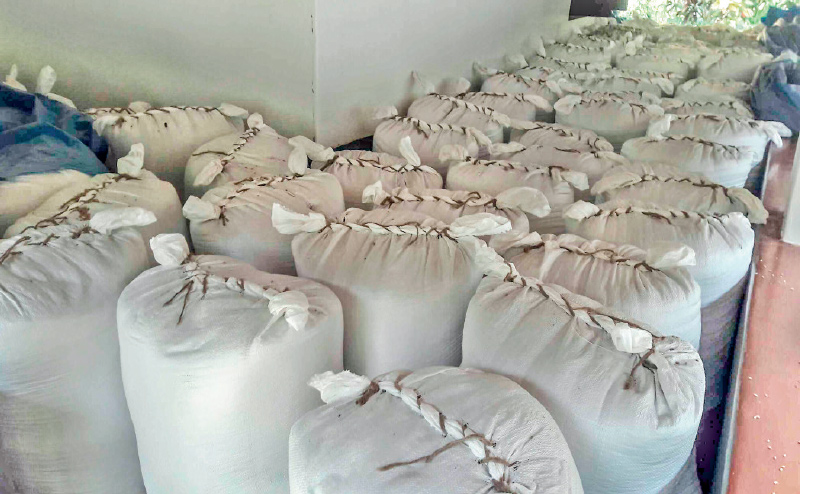 text_fieldsസംഭരണം നടക്കാത്തതിനാൽ പേരൂരിൽ വീടുകളിൽ സൂക്ഷിച്ച നെൽച്ചാക്കുകൾ