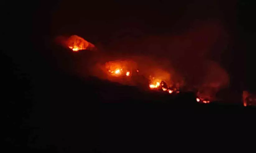 നെല്ലിയാമ്പതി മലനിരകളിൽ പടർന്ന തീ അണഞ്ഞില്ല