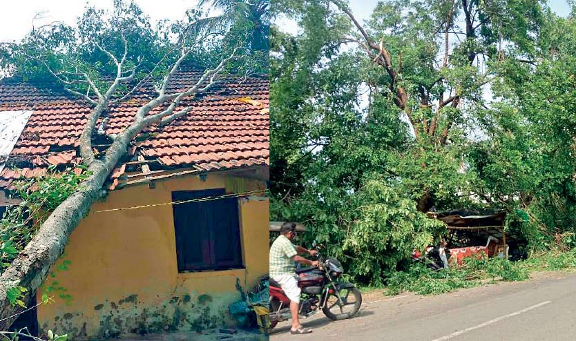 text_fields1. കാവശ്ശേരി മുതലകുളം കോളനിയിൽ കാറ്റിൽ മരം പൊട്ടിവീണ് തകർന്ന വീടുകളിലൊന്ന് 2. ആലത്തൂർമല മലമൊക്ക് ഭാഗത്ത് കാറ്റിൽ മരം