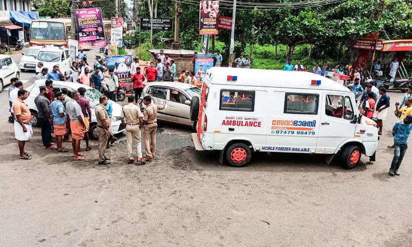 പത്തനംതിട്ടയിൽനിന്ന് വന്ന ആംബുലൻസും കാറും ഒരേസമയം കുരിശടി ജങ്ഷനിൽനിന്ന് വലത്തേക്ക് തിരിഞ്ഞതാണ് അപകടത്തിന് കാരണമായത്. കാർ ഒതുക്കി എന്ന് വിചാരിച്ചാണ് അമിതവേഗത്തിൽ ആംബുലൻസ് ഡ്രൈവർ വാഹനം വലത്തേക്ക് തിരിച്ചത്. ഇതേസമയം, തന്നെ മാരുതി കാറും വലത്തേക്ക് തിരിഞ്ഞു. തുടർന്ന് ആംബുലൻസ്, മാരുതി കാർ ഇടിച്ചുതെറിപ്പിച്ചു.