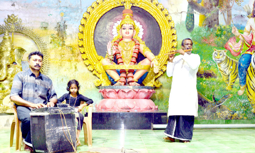 20 മലയാളം, തമിഴ് പാട്ടുകളാണ് പുല്ലാങ്കുഴലില് ആലപിച്ചത്. ക്ലാസിക്കല്, സെമി ക്ലാസിക്കല്, ഭക്തിഗാനങ്ങളടങ്ങിയ സംഗീതാര്ച്ചനയാണ് സമ്മാനിച്ചത്. 10 വര്ഷമായി ശബരിമലയില് പുല്ലാങ്കുഴലില് ഇദ്ദേഹം സംഗീതാര്ച്ചന നടത്തുന്നുണ്ട്. പരിപാടിക്ക് പക്കമേളം ഒരുക്കിയത് കണ്ണന് പാലക്കാടാണ്.