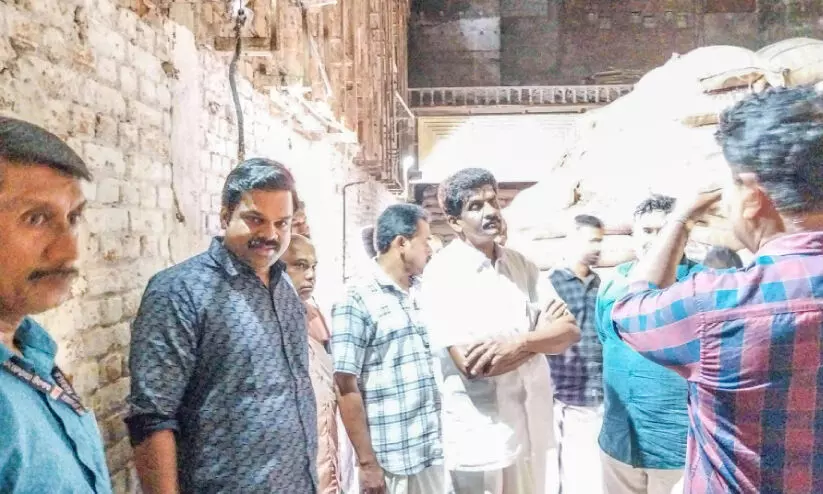 ഉദ്യോഗസ്ഥരും റേഷൻ വ്യാപാരികളും കോന്നി എഫ്.സി.ഐ ഗോഡൗൺ സന്ദർശിക്കുന്നു