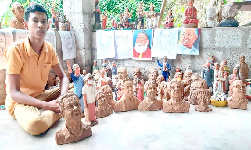 കോന്നി: ജീവൻതുടിക്കുന്ന ശിൽപങ്ങൾ ചിതൽപ്പുറ്റിൽ തീർക്കുകയാണ് കോന്നി ഐരവൺ സ്വദേശിയായ സച്ചു എസ്. കൈമൾ എന്ന പ്ലസ് വൺ വിദ്യാർഥി. ശിൽപ നിർമാണത്തിൽ പരിശീലനമൊന്നും ലഭിച്ചിട്ടില്ലാത്ത സച്ചു ചിത്രങ്ങൾ നോക്കിയും നെറ്റിൽ നോക്കിയുമാണ് ഒാരോന്നും നിർമിക്കുന്നത്.