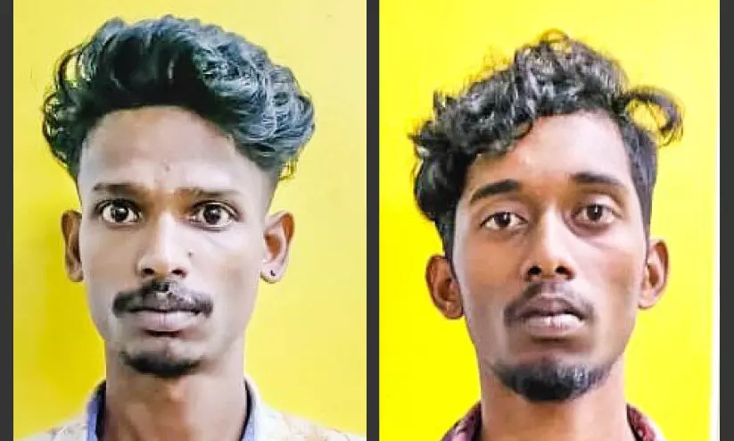 text_fieldsകോന്നി : വാഹനത്തിൽനിന്നും ബാറ്ററി മോഷ്ടിച്ച് വിറ്റ സംഭവത്തിൽ രണ്ട് യുവാക്കളെ കൂടൽ പൊലീസ് പിടികൂടി. കൂടൽ മിച്ചഭൂമി സ്വദേശി ബാബു വിലാസം ശ്രീരാഗ് (26),പോത്തുപാറ കാരമണ്ണിൽ വീട്ടിൽ സബിനേഷ് (18) എന്നിവരാണ് അറസ്റ്റിലായത്. കൂടൽ കടവന്നൂർ സന്തോഷ് വിലാസത്തിൽ സന്തോഷിന്റെ പരാതിയിൽ പ്രതികളെ മണിക്കൂറുകൾക്കകം പിടികൂടിയത്. വ്യാഴാഴ്ച രാത്രി പത്ത് മണിക്ക് ശേഷവും വെള്ളിയാഴ്ച രാവിലെ ആറുമണിക്ക് ഇടയിലുമായാണ് മോഷണം നടന്നത്.