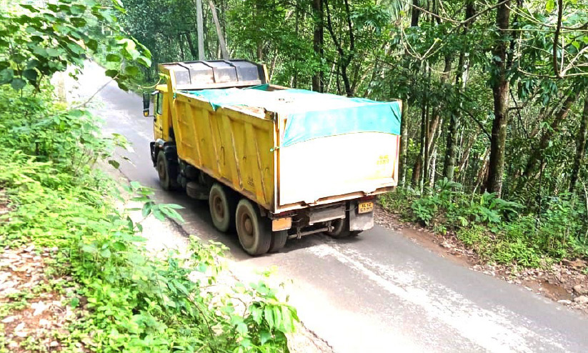 text_fieldsക്രഷറുകളിൽനിന്നുള്ള മണ്ണുമായി ചുങ്കപ്പാറ-പൊന്തൻ പുഴ റോഡ് വഴി പോകുന്ന ടിപ്പർ
