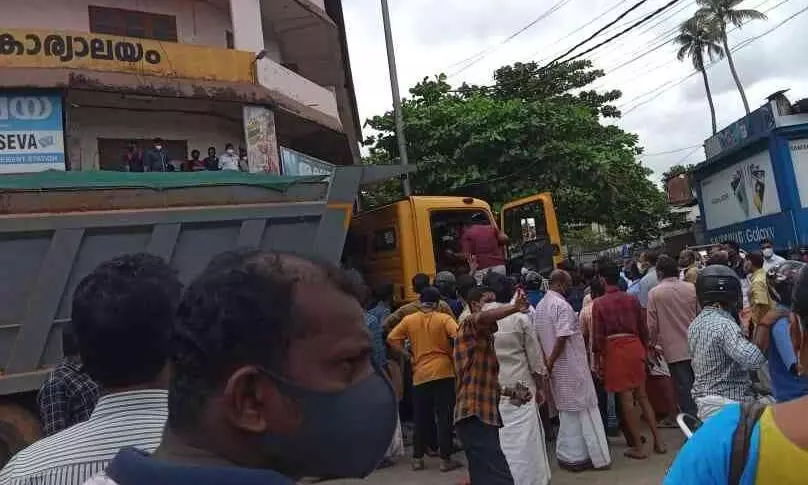 ടിപ്പർ ലോറി നടുറോഡിൽ നിർത്തി; പരിഭ്രാന്തരായി ഒാടിക്കൂടിയവർ കണ്ടത്