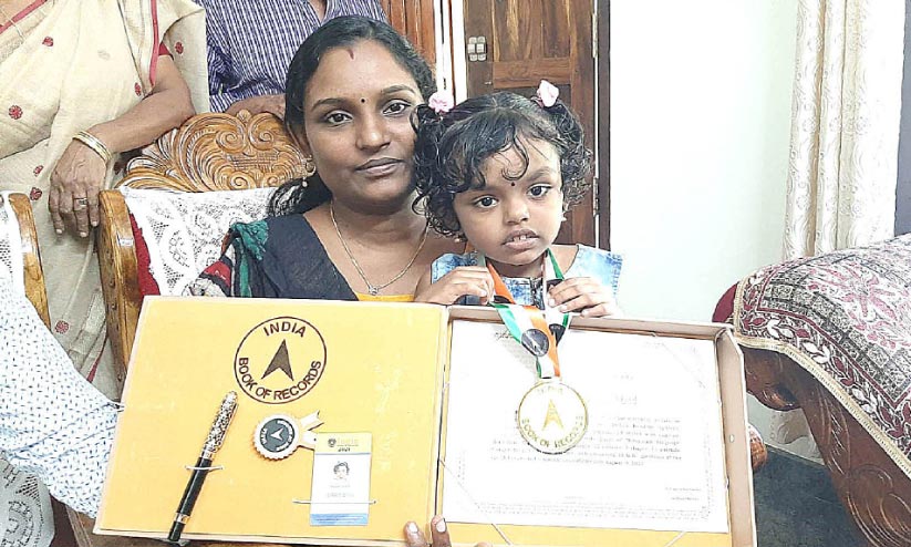 ഇന്ത്യ ബുക്ക് ഓഫ് റെക്കോഡ്സിൽ ഇടം നേടി നാല് വയസ്സുകാരി
