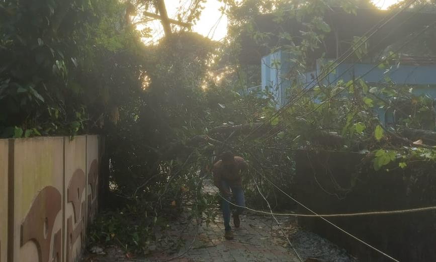 സമീപ പുരയിടത്തിൽ നിന്നിരുന്ന മരമാണ് മറിഞ്ഞു വീണത്. വൈദ്യുത ലൈനുകളിലേക്ക് മരം വീണതിനെ തുടർന്ന് രണ്ട് വൈദ്യുത പോസ്റ്റുകളാണ് ഒടിഞ്ഞു വീണത്. സംഭവത്തെ തുടർന്ന് പ്രദേശത്ത് മണിക്കൂറുകളായി വൈദ്യുതിയും ഗതാഗതവും നിലച്ചു കിടക്കുകയാണ്.