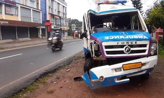 ഗർഭിണിയുമായി പോയ ആംബുലൻസ് പോസ്റ്റിലിടിച്ച് മറിഞ്ഞു