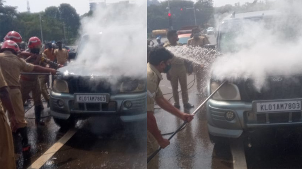 ഇന്ന് രാവിലെ 11 മണിയോടെ ആയിരുന്നു സംഭവം. സ്വകാര്യ ബസ് സ്റ്റാന്ഡിന് സമീപത്തെ ഫ്ലൈ ഓവറിന്റെ തുടക്കഭാഗത്ത് നിർത്തിയിട്ടിരുന്ന തിരുവനന്തപുരം സ്വദേശിയുടെ ഉടമസ്ഥതയിലുള്ള കാറിനാണ് തീപിടിച്ചത്.