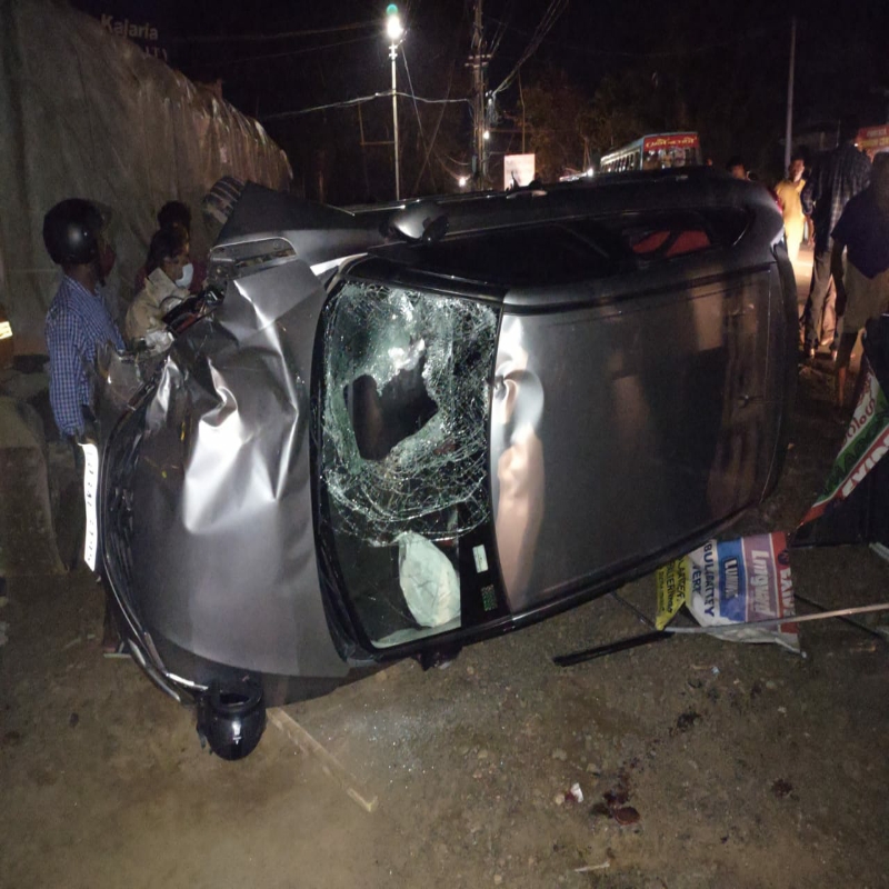 കാർ മൂന്ന് ഇരു ചക്ര വാഹനങ്ങളെ ഇടിച്ചു തെറിപ്പിച്ചു; പിന്നീട് തലകീഴായി മറിഞ്ഞു