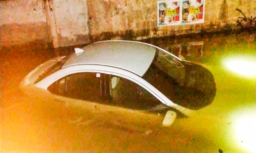 റെയിൽവേ അടിപ്പാതയിലെ വെള്ളക്കെട്ടിൽ കാർ മുങ്ങി