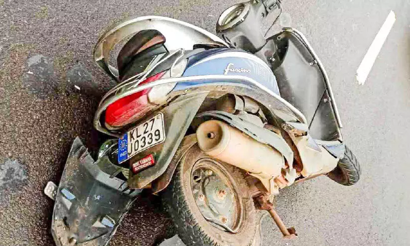 തോട്ട ഭാഗം ജങ്ഷന് സമീപം അപകടത്തിൽപെട്ട സ്കൂട്ടർ