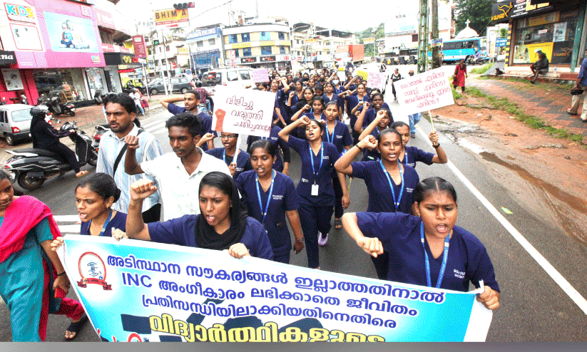 അംഗീകാരമില്ലാത്ത നഴ്സിങ് കോളജ്; വിദ്യാര്ഥികള് മന്ത്രിയുടെ ഓഫിസിലേക്ക് മാര്ച്ച് നടത്തി