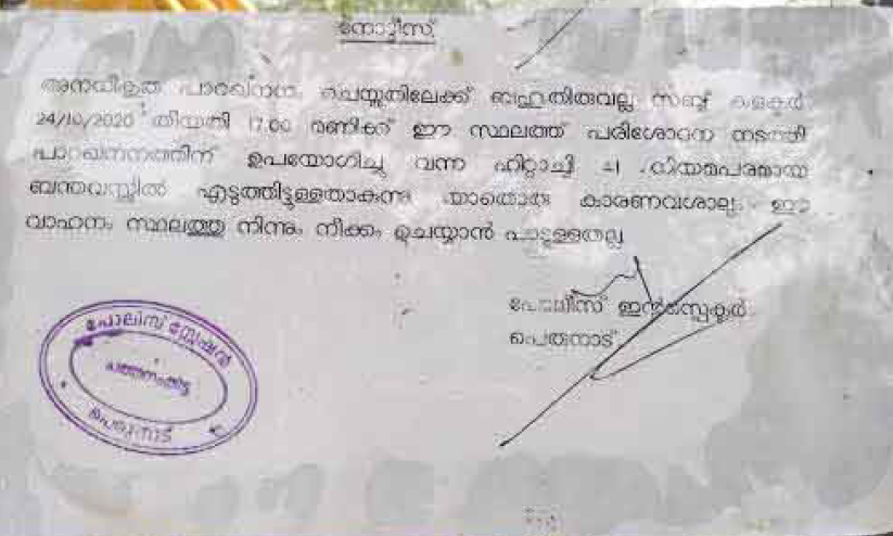 text_fieldsഅത്തിക്കയം ഉന്നത്താനിയിൽ അനധികൃത പാറ ഖനനത്തിനുപയോഗിച്ച വാഹനത്തിൽ പൊലീസ് നോട്ടീസ്