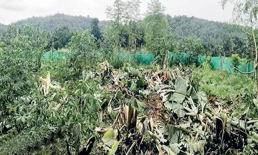 വീടുകള്ക്ക് ചുറ്റുമുള്ള വാഴ, കവുങ്ങ്, തെങ്ങ്, റബര്, തേക്ക് എന്നിവ ചൊവ്വാഴ്ച പുലര്ച്ച ആനകള് നശിപ്പിച്ചു. കെ. അബ്ദുല് കരീം, പി.വി. മന്മഥന്, പടിയറ പുതുപറമ്പില് വിജയന്, പി.ആര്. ശങ്കരന്, കോന്നോടത്ത് രാജന്, സി.കെ. പ്രഭാകരന്, മേലേതില് ഉണ്ണി, ചോലയില് രാധാകൃഷ്ണന്, താഴ്വാക്കര രവി, തകരയില് കുമാര്, ചോലയില് നാരായണന്, ശാരദ കൂളിമാട്, പ്രസാദ് പൂന്തുരുത്തി, പി.വി. രാധാകൃഷ്ണന് എന്നിവരുടെ വീടുകള്ക്ക് സമീപവും പറമ്പുകളിലുമാണ് ആനക്കൂട്ടം നാശം വിതച്ചത്.