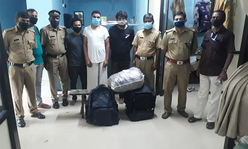 ബുള്ളറ്റിൽ കടത്തുകയായിരുന്ന ഒമ്പത് കിലോ കഞ്ചാവുമായി മൂന്നുപേർ പിടിയിൽ