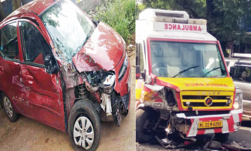 രോഗിയുമായി പോയ ആംബുലൻസും കാറും കൂട്ടിയിടിച്ച് ആറുപേർക്ക് പരിക്ക്