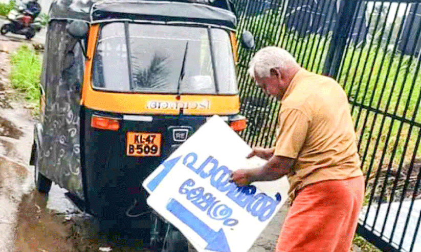 ദിശാബോർഡുകൾ സ്ഥാപിച്ച് ഓട്ടോ ഡ്രൈവർ