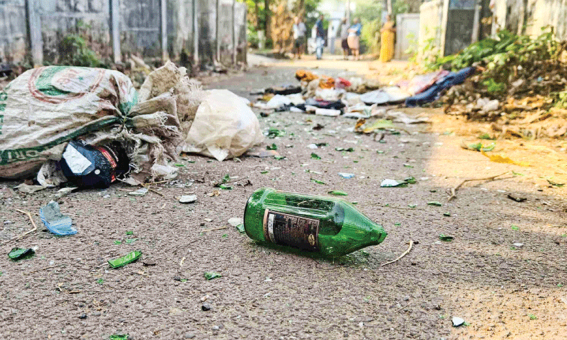 റോഡിൽ 50 മീറ്ററോളം ദൂരം കുപ്പിയും ചില്ലുകളും നിറഞ്ഞ നിലയിലായിരുന്നു. റോഡരികിലും സമീപത്തെ പറമ്പുകളിലും മാലിന്യം തള്ളുന്നവർ സജീവമാണ്. ഉൾറോഡ് ആയതിനാൽ പുറമെ നിന്നുള്ളവർ ഇവിടെ മാലിന്യം നിക്ഷേപിക്കാൻ സാധ്യത കുറവാണ്. ഇതുവഴി സ്ഥിരമായി സഞ്ചരിക്കുന്നവരോ പ്രദേശത്തു എന്നെയുള്ള മറ്റാരൊക്കേയോ ആകാം മാലിന്യം തള്ളുന്നത് എന്നാണ് കരുതുന്നത്.