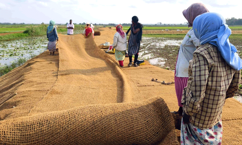 കയർ ഭൂവസ്ത്രമണിഞ്ഞ് അരിമ്പൂർ കോൾപ്പാടങ്ങൾ