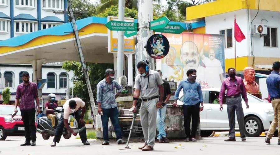 text_fieldsകിഴക്കെനട ജങ്ഷനിൽ മാൻഹോൾ പരിശോധിക്കുന്ന ബോംബ് സ്ക്വാഡ്
