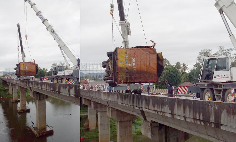 എറണാകുളത്തെ ക്രെയിന് കമ്പനിയാണ് കണ്ടെയ്നര് ലോറി ഉയര്ത്തുന്ന പണി ഏറ്റെടുത്തത്. വെള്ളിയാഴ്ച രാവിലെ 6.30 മുതല് ശ്രമം തുടങ്ങി 10ഓടെ വലിയ ഭാഗം ഉയര്ത്തി. അവശേഷിച്ച ഡ്രൈവര് ക്യാബിനും തുടര്ന്ന് പുറത്തെത്തിച്ചു.