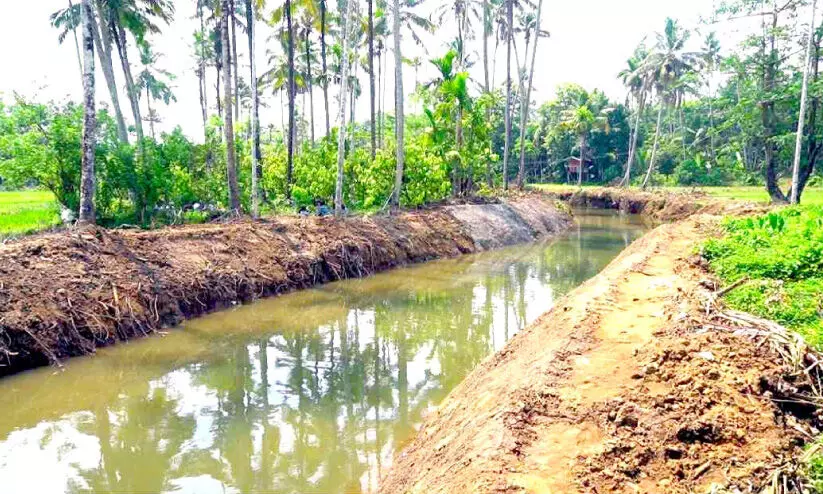 text_fieldsനവീകരണം പൂര്ത്തിയായ വെള്ളിക്കുളം വലിയ തോടിന്റെ ഭാഗം