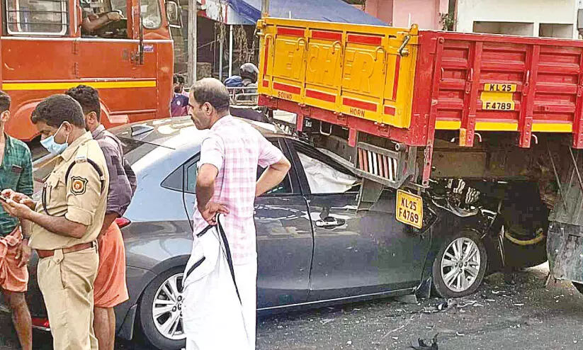 പുതുക്കാട് ലോറിക്ക് പിറകിൽ കാറിടിച്ച് രണ്ട് പേർക്ക് പരിക്ക്