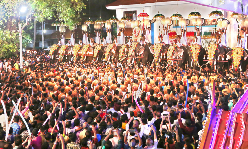 തൊട്ടിപ്പാൾ ഭഗവതിയുടെ പകൽപൂരത്തിൽ പങ്കെടുത്ത് ബുധനാഴ്ച വൈകീട്ട് ക്ഷേത്രത്തിൽ തിരിച്ചെത്തിയ ആറാട്ടുപുഴ ശാസ്താവ് ഏറ്റവും വലിയ ദേവമേളക്ക് ആതിഥ്യമരുളി 15 ആനകളുടെ അകമ്പടിയോടെ പുറത്തേക്കെഴുന്നള്ളി.