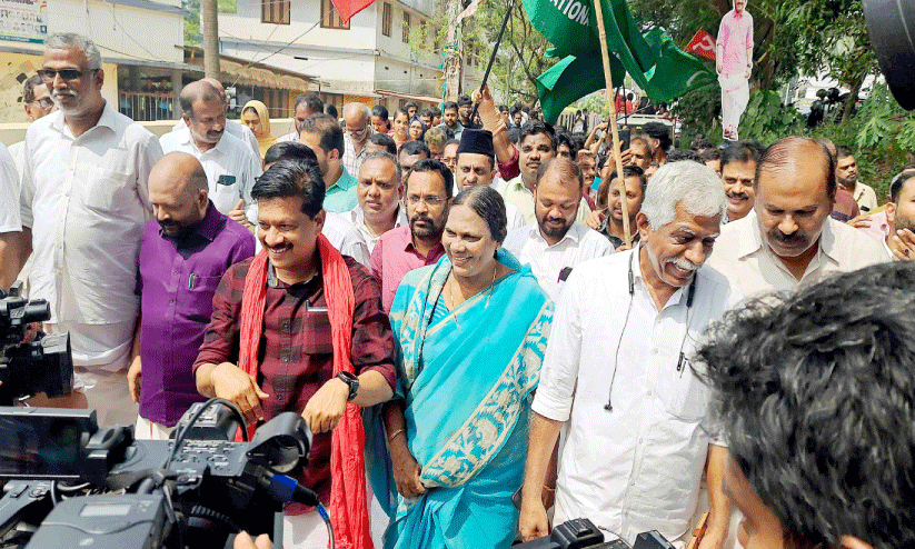 ചെറുതുരുത്തി: ചേലക്കര ഉപതെരഞ്ഞെടുപ്പിൽ വിജയിച്ച എൽ.ഡി.എഫ് സ്ഥാനാർഥി യു.ആർ. പ്രദീപിന്റെ ആഹ്ലാദ പ്രകടനം ആവേശകടലായി. ചെറുതുരുത്തി ചുങ്കം സി.പി.എം ഓഫിസിൽ നിന്നാണ് പ്രകടനത്തിന് തുടക്കം കുറിച്ചത്. മന്ത്രി കെ. രാജൻ, മുൻമന്ത്രി വി.എസ്. സുനിൽകുമാർ, മുൻ എം.എൽ.എ അബ്ദുൽ ഖാദർ എന്നിവരും സ്ത്രീകളും മുതിർന്നവരുമുൾപ്പെടെ ആയിരക്കണക്കിനാളുകളുടെ അകമ്പടിയോടെ വാദ്യോപകരണങ്ങളുമായാണ് പ്രകടനം വോട്ടെണ്ണൽ കേന്ദ്രമായ ചെറുതുരുത്തി ഹയർസെക്കൻഡറി സ്കൂളിലേക്ക് എത്തിയത്.