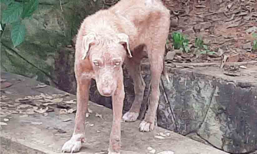രോഗമുള്ള തെരുവുനായുടെ ശരീരത്തിലെ രോമങ്ങൾ