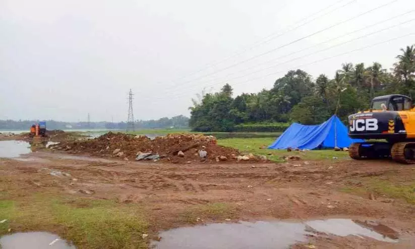 എന്നാൽ, ഒരു മാസമായി പണികൾ നിലച്ചിട്ടും പ്രവൃത്തികൾ നടക്കുന്നുണ്ടെന്നാണ് കാടുകുറ്റി പഞ്ചായത്ത് അധികൃതർ പറയുന്നത്. പണികൾക്കായി കൊണ്ടുവന്ന മണ്ണുമാന്തിയും കരിങ്കല്ലും നീക്കം ചെയ്തിട്ടില്ലെന്നും അവിടെ തന്നെയുണ്ടെന്നുമാണ് അവരുടെ ന്യായവാദം.