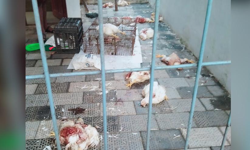 എരുമപ്പെട്ടി സ്വദേശി ഷെഫീറിെൻറ ഉടമസ്ഥതയിൽ കുന്നത്തേരിയിൽ പ്രവർത്തിക്കുന്ന ഫ്രണ്ട്സ് ചിക്കൻ സെൻററിന് നേരെയാണ് വ്യാഴാഴ്ച രാത്രിയിൽ ആക്രമണം നടന്നത്. കൂട്ടിലടച്ചിരുന്ന കോഴികളെ കൊന്ന് തള്ളിയ നിലയിലാണ്.