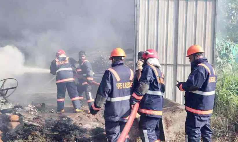 ചവറ തട്ടശ്ശേരിയിൽ തീപിടിത്തം: ഗോഡൗൺ കത്തിനശിച്ചു