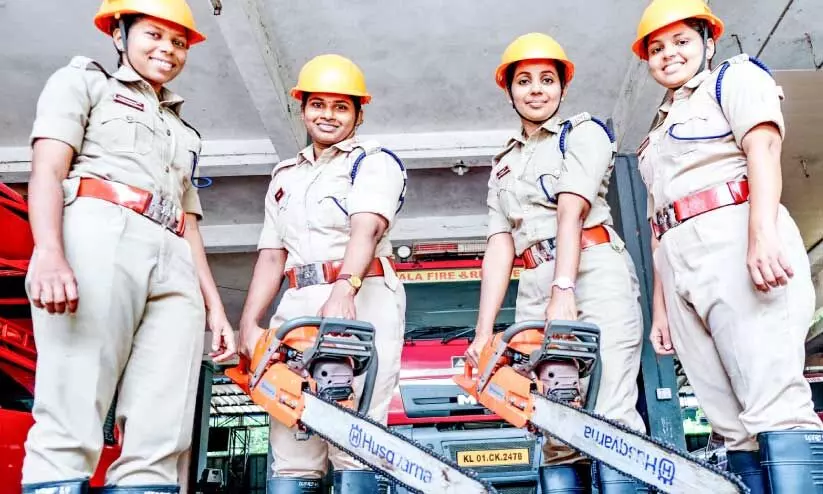 text_fieldsതൃശൂർ ഫയർ സ്റ്റേഷനിലെ വനിത അഗ്നിരക്ഷാസേന ഉദ്യോഗസ്ഥരായ ആൽമ, ആര്യ, അഖില, ആൻമരിയ എന്നിവർ ടി.എച്ച്. ജദീർ