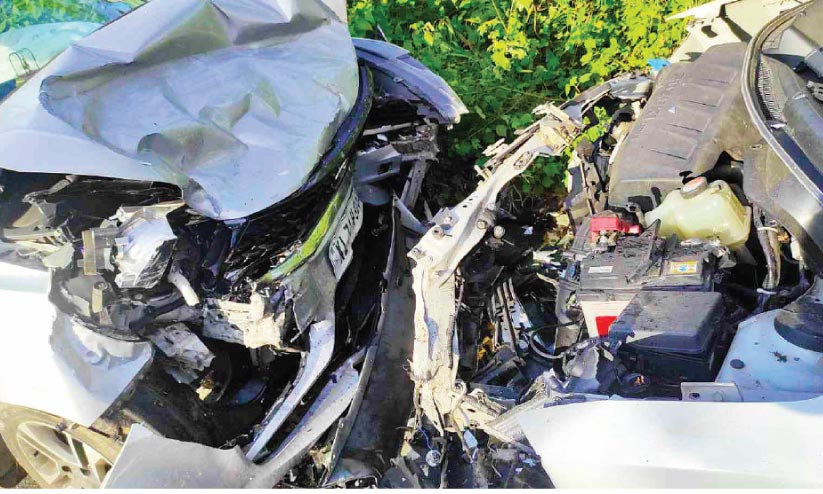 തളിക്കുളം ഹൈസ്കൂളിന് സമീപം കാറുകൾ കൂട്ടിയിടിച്ച് തകർന്ന നിലയിൽ