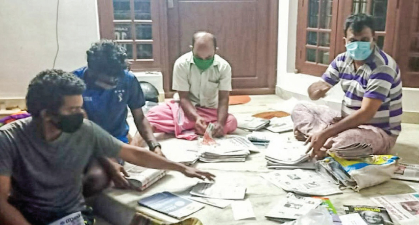 text_fieldsസ്റ്റൈജുവിെൻറ നേതൃത്വത്തില് പത്രക്കെട്ടുകള് തരംതിരിക്കുന്നു