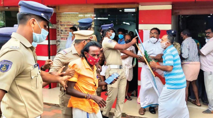text_fieldsകരുവന്നൂർ സഹകരണ ബാങ്ക് വായ്പ തട്ടിപ്പ് കേസിലെ അഞ്ചാം പ്രതി ബിജോയിയെ തെളിവെടുപ്പിനു ശേഷം പുറത്തേക്ക് കൊണ്ടുവരുമ്പോള് തടയാന് ശ്രമിക്കുന്ന ബി.ജെ.പി പ്രവര്ത്തകരെ പൊലീസ് മാറ്റുന്നു
