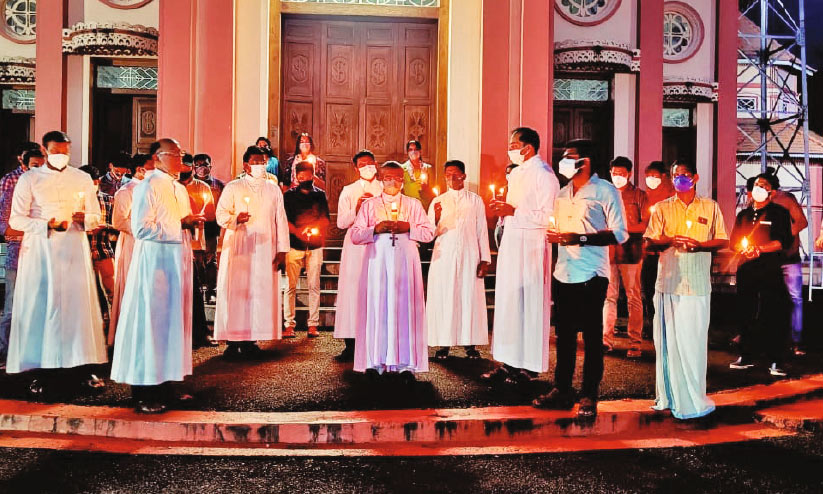 പള്ളി തകര്ത്തതില് പ്രതിഷേധിച്ച് ഇരിങ്ങാലക്കുട സെൻറ് തോമസ് കത്തീഡ്രല് അങ്കണത്തില് രൂപത സി.എൽ.സിയുടെ നേതൃത്വത്തില് നടന്ന പ്രതിഷേധജ്വാല തെളിച്ചുകൊണ്ട് സംസാരിക്കുയായിരുന്നു ബിഷപ്. കത്തീഡ്രല് വികാരി ഫാ. പയസ് ചിറപ്പണത്ത് അധ്യക്ഷത വഹിച്ചു. രൂപത ഡയറക്ടര് ഫാ. സിബു കള്ളാപറമ്പില്, അസി. ഡയറക്ടര് ഫാ. ലിേൻറാ പനംങ്കുളം, കത്തീഡ്രല് അസിസ്റ്റൻറ് വികാരിമാരായ ഫാ. സാംസണ് എലുവത്തിങ്കല്, ഫാ. ജിബിന് നായത്തോടന്, ഫാ. ടോണി പാറേക്കാടന്, രൂപത പ്രസിഡൻറ് റിബിന് റാഫേല്, സെക്രട്ടറി വിബിന് പുളിക്കന്, സംസ്ഥാന പ്രസിഡൻറ് ഷോബി കെ. പോള്, വൈസ് പ്രസിഡൻറുമാരായ ഗ്ലൈജോ തെക്കൂടന്, ഏയ്ഞ്ചല് ബോസ്, നിഖില് ആൻറണി, ഫൊറോന പ്രസിഡൻറ് അബീദ് വിന്സ്, കത്തീഡ്രല് സി.എൽ.സി പ്രസിഡൻറ് ക്ലിന്സ് പോളി, ഓര്ഗനൈസര് ജിജു കോട്ടോളി എന്നിവര് സംസാരിച്ചു.