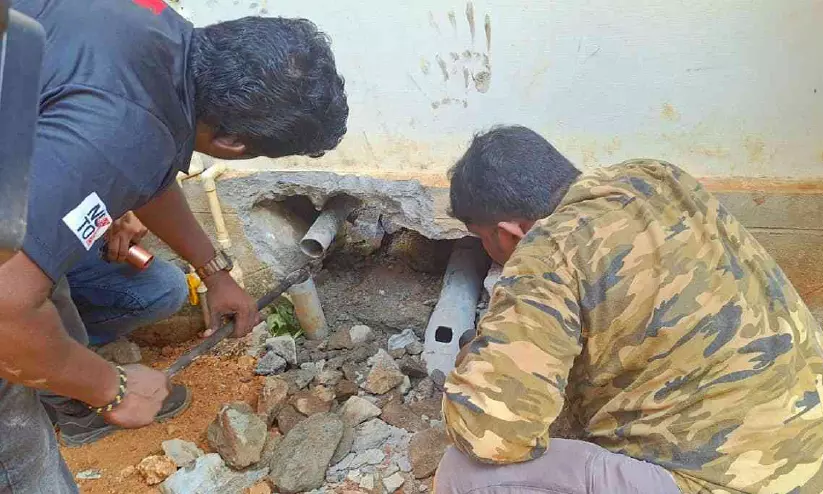 text_fieldsകടമ്പോടുള്ള വീടിന്റെ തറ ഇളക്കി പാമ്പിനായി തെരച്ചില് നടത്തുന്നു