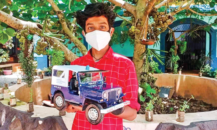 text_fieldsഡി.ജി.പിക്ക് സമ്മാനിക്കാൻ ആദിത്യന് നിര്മിച്ച പൊലീസ് ജീപ്പിെൻറ രൂപം