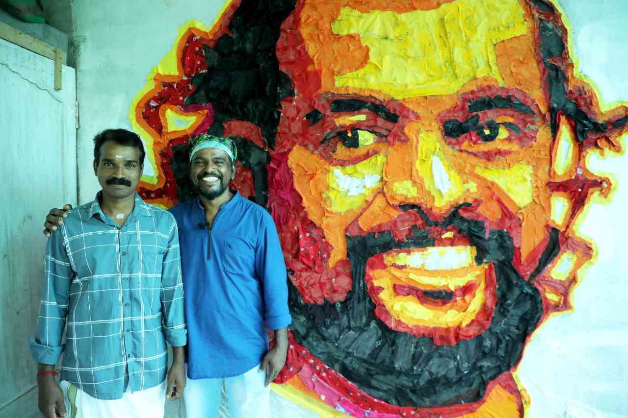 text_fieldsകൊടുങ്ങല്ലൂർ: കൊടുങ്ങല്ലൂരിൻ്റെ മറ്റൊരു ചിത്രകലാ വിസ്മയമാകാൻ സാക്ഷാൽ ഡാവിഞ്ചി സുരേഷിനെ തുണികഷണങ്ങളാൽ കാലുകൊണ്ട് ചുമരിൽ ചിത്രീകരിച്ച് സുധിയും. ചിത്രകലയിൽ ഡാവിഞ്ചിയെ വരെ ഞ്ഞെട്ടിച്ച സുധിയെയും ഈ പ്രതിഭ ഒരുക്കിയ സ്വന്തം ചിത്രവും കാണാൻ ഡാവിഞ്ചി സുരേഷ് എത്തിയത് പ്രതിഭകളുടെ സംഗമത്തോടൊപ്പം കൗതുകകരമായ അനുഭവവുമായി.