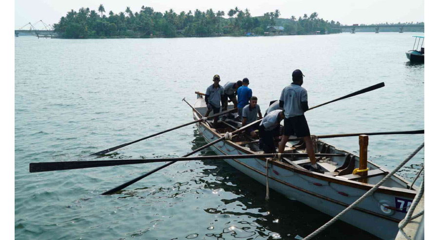 115 പേരടങ്ങുന്ന സംഘമാണ് തുഴച്ചിൽ, സൈക്ലിങ് എന്നിവയിൽ പങ്കെടുത്തത്. കൊച്ചി നാവിക ആസ്ഥാനത്തുനിന്നും മുസിരിസിലേക്കുള്ള 20 നോട്ടിക്കൽ മൈൽ ദൂരമാണ് തുഴച്ചിൽ സംഘം നാല് വെയ്ലർ ബോട്ടുകളിലായി പിന്നിട്ടത്. കൊച്ചി നേവൽബേസ് മുതൽ വീരംപുഴ വരെയും വീരംപുഴ മുതൽ മുസിരിസ് കോട്ടപ്പുറം കായലോരം വരെ 40 പേരാണ് പുള്ളിങ്ങിൽ പങ്കെടുത്തത്. 75 പേരടങ്ങുന്ന സംഘം 75 കി.മീ ദൂരത്തിൽ സൈക്ലിങ്ങിലും പങ്കെടുത്തു.