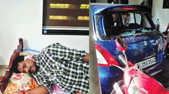 text_fieldsആക്രമണത്തിൽ പരിക്കേറ്റ വിപ്ലവൻ, കുന്നംകുളം ചെമ്മണൂരിൽ വീടുകയറി ആക്രമിച്ച സംഘം തകർത്ത കാറും സ്കൂട്ടറും