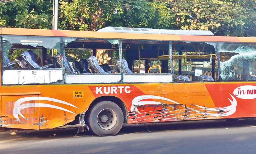 കെ.എസ്.ആർ.ടി.സി ലോഫ്ലോർ ബസും ചരക്കുലോറിയും ഇടിച്ച് ഒമ്പതുപേർക്ക് പരിക്ക്