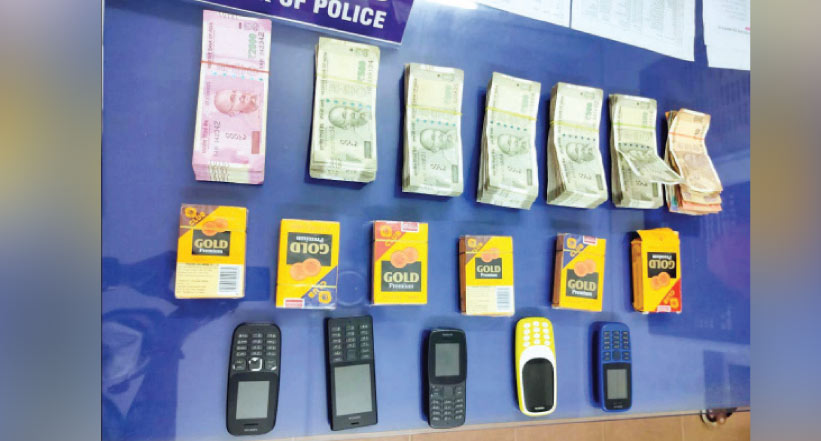 പിടിച്ചെടുത്ത നാല് ലക്ഷത്തോളം രൂപയും മൊബൈൽ ഫോണുകളും
