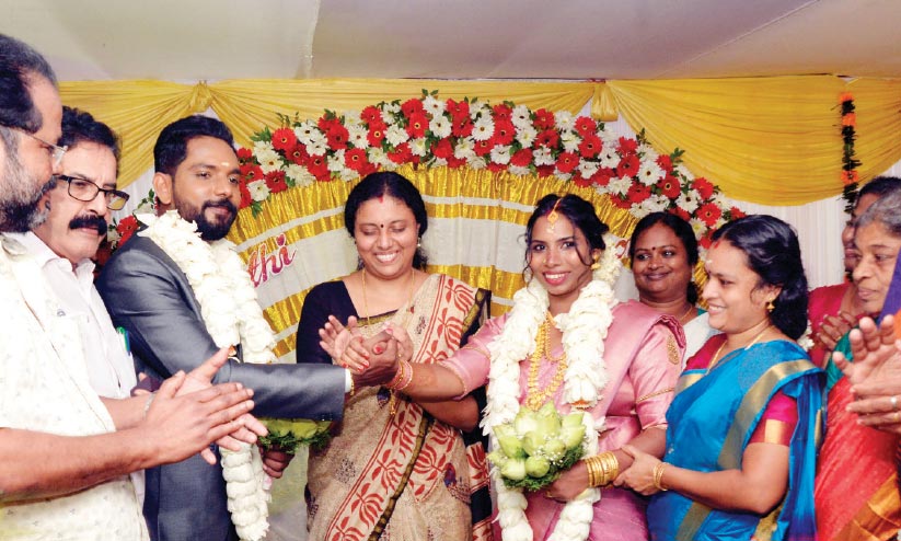 വിവാഹ മോതിരം കൈമാറി മേയര് എം.കെ. വര്ഗീസും വരണമാല്യം എടുത്ത് നല്കി പി. ബാലചന്ദ്രന് എം.എല്.എയും കോര്പറേഷന് ക്ഷേമകാര്യ സ്ഥിരംസമിതി അധ്യക്ഷ ലാലി ജയിംസും നവദമ്പതികളെ അനുഗ്രഹിച്ചു. അമ്മയുടെ സ്ഥാനത്ത് മഹിളമന്ദിരം സൂപ്രണ്ട് പി.എസ്. ഉഷയെ സാക്ഷിയാക്കി കലക്ടര് വധുവിനെ കൈപിടിച്ച് നല്കി. ബൊക്കെ കൈമാറി ഡെപ്യൂട്ടി മേയര് രാജശ്രീ ഗോപന് നവദമ്പതികള്ക്ക് ആശംസ നേര്ന്നു.